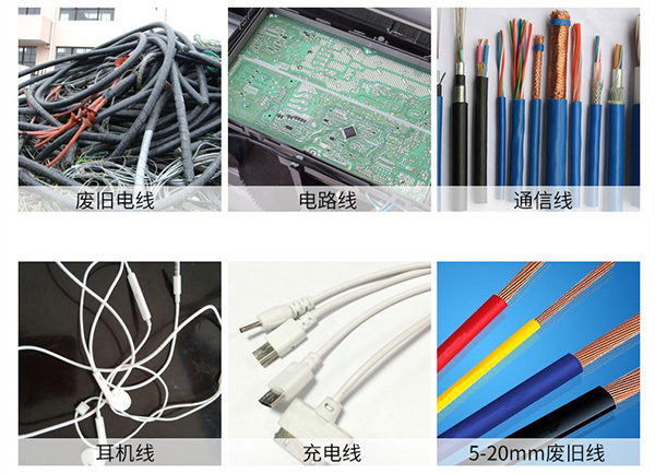 家装通电线、杂线、毛细铜线、网络线、单股线、充电插头线、工业电缆、通信电话线、插板线等一系列线材,也可用于铝芯线材、铝塑线、地埋线、废防老化线。